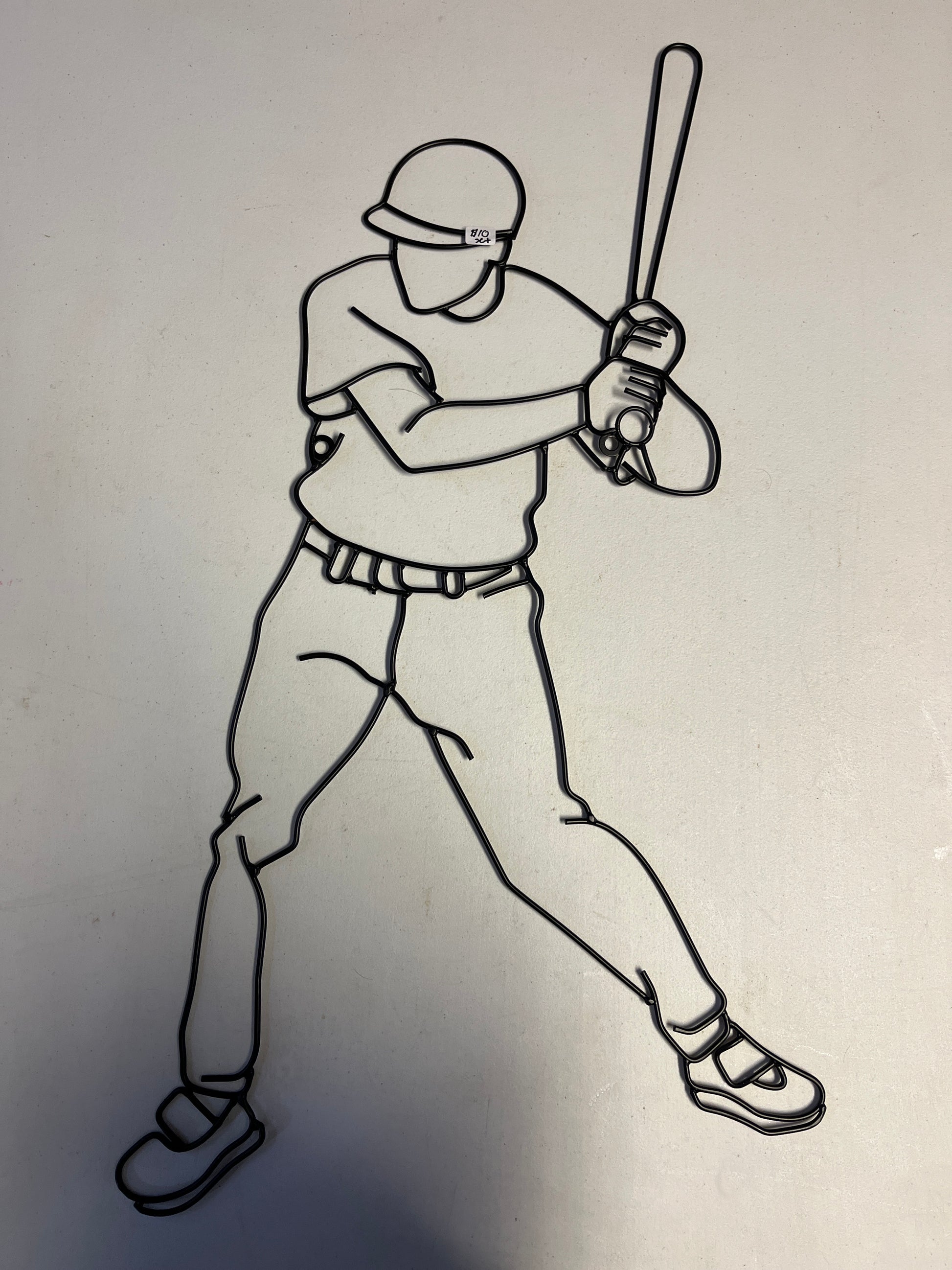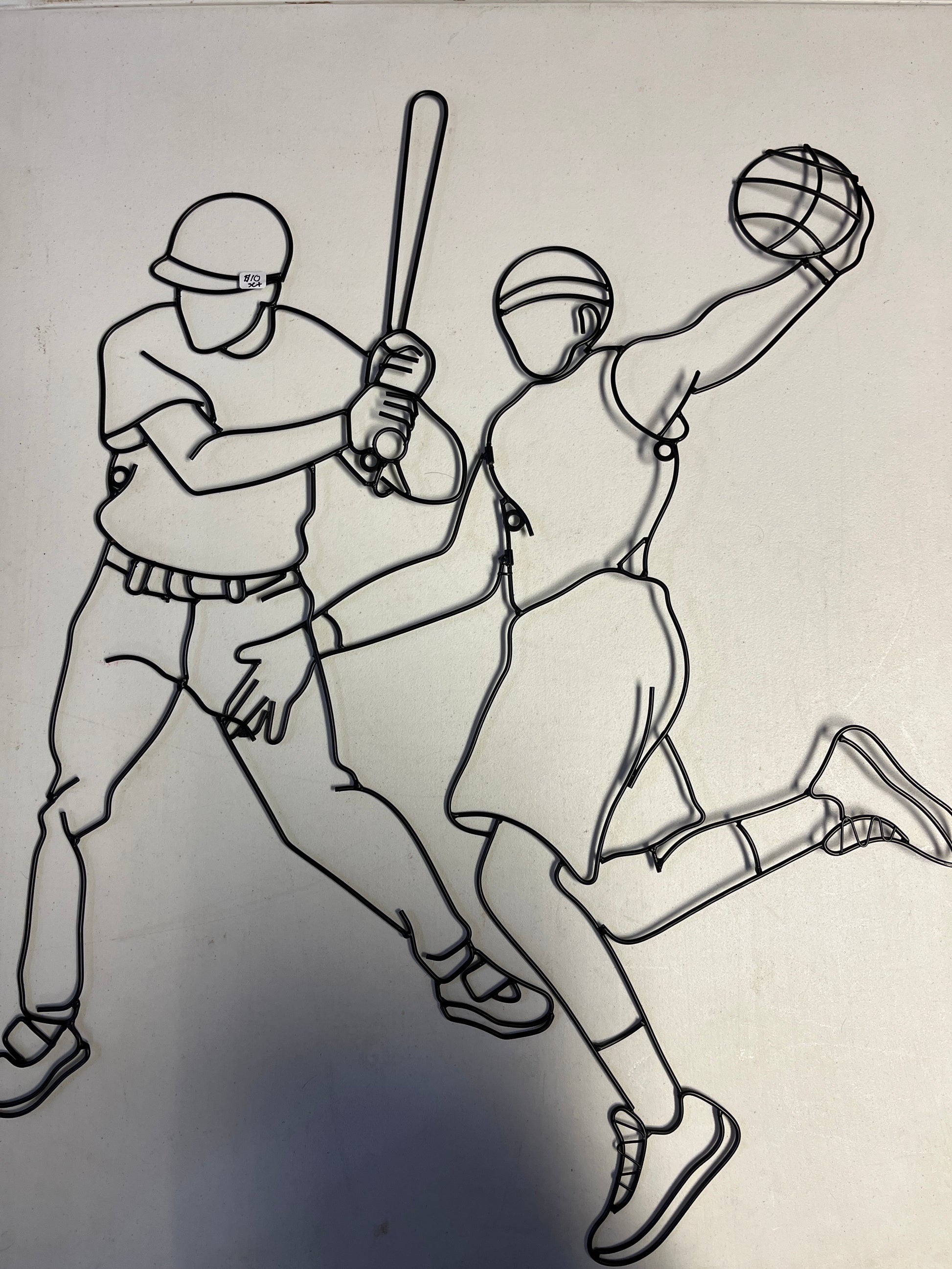 Metal wire basketball player and baseball player outline