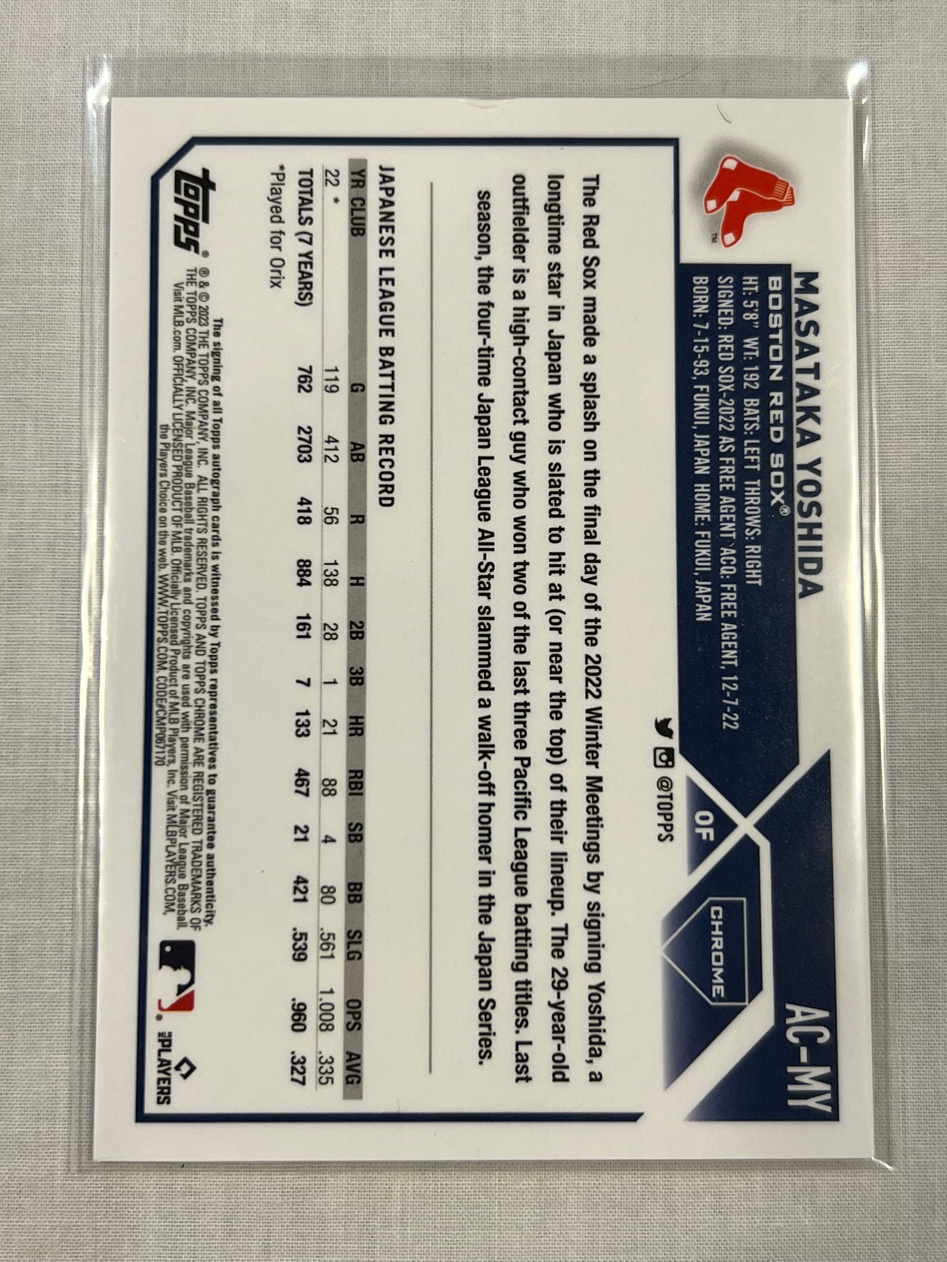 Masataka Yoshida Topps Chrome Rookie Auto